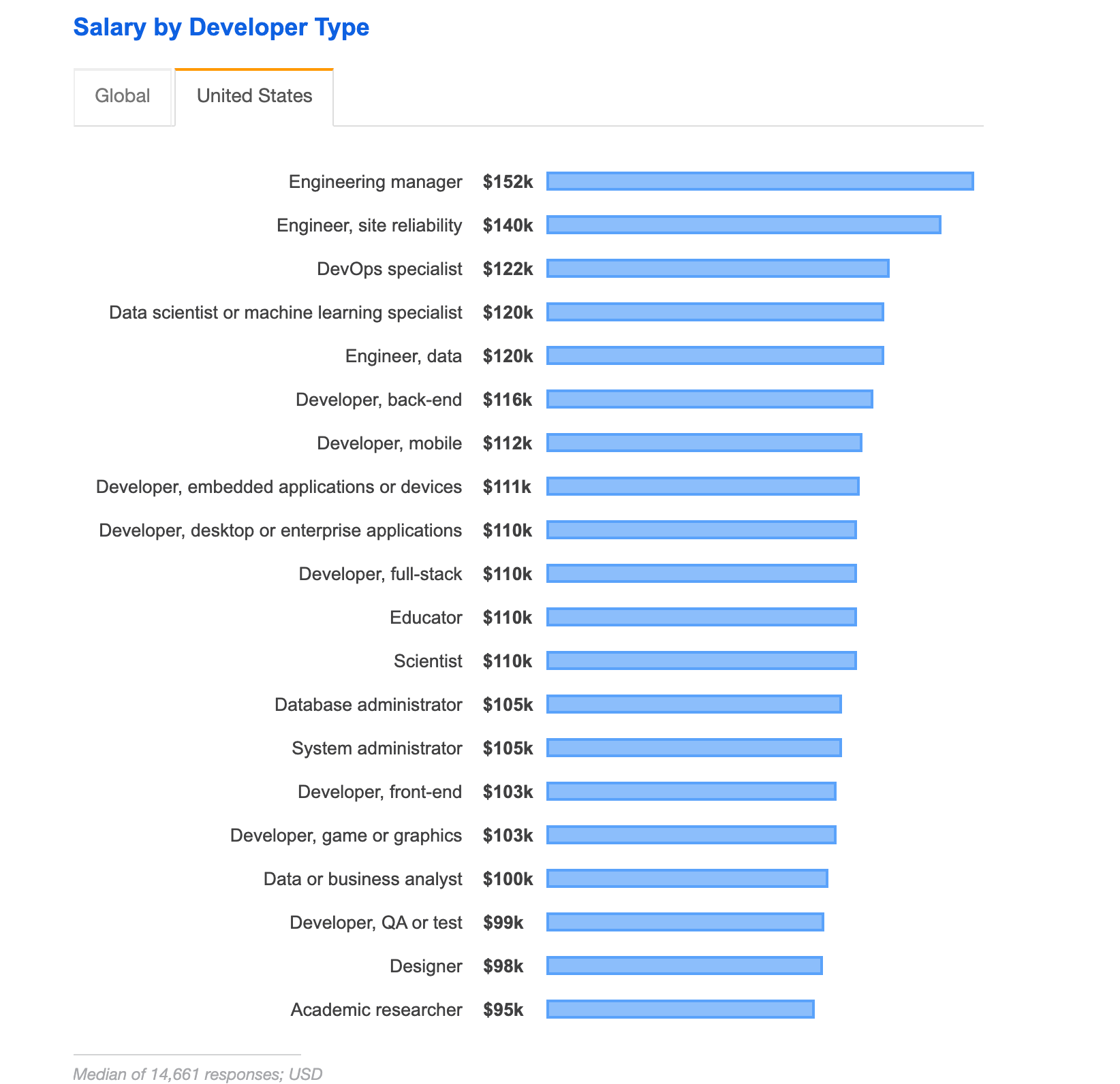 I can only share my personal experience and anecdotal evidence I've heard from others. If you're interested in a broader data set, Stack Overflow provides an incredibly detailed report each year.